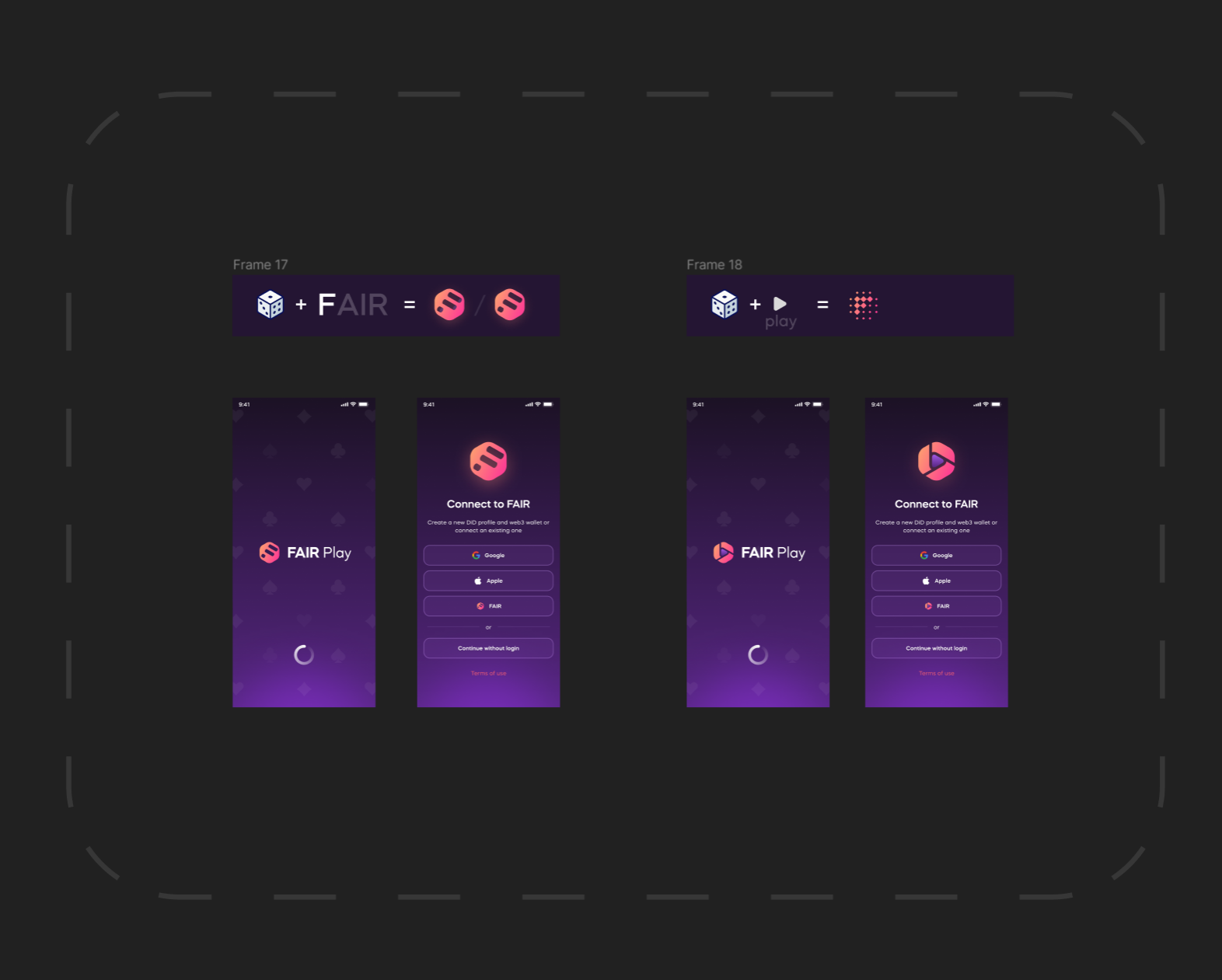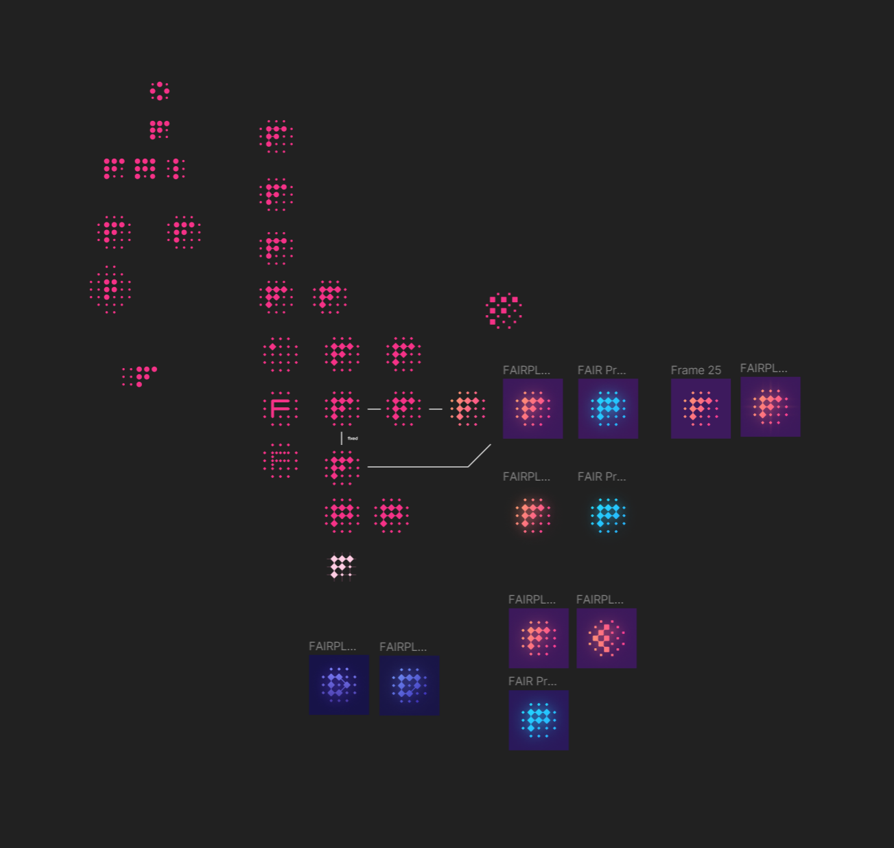 The final logo depicts FairPlay as a platform (represented by the dots) where companies and players can unite to form something greater. Additionally, the logo represents a die/cube for rolling.
