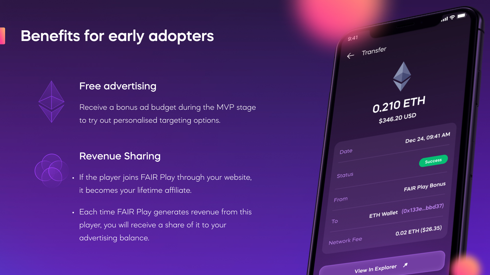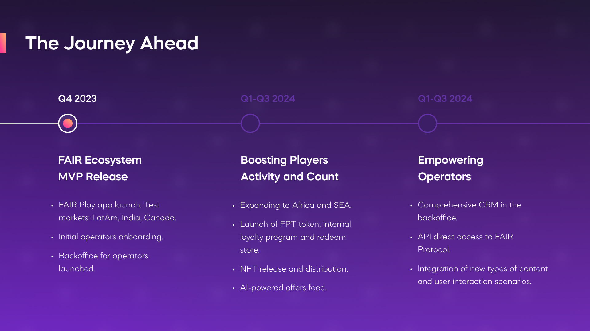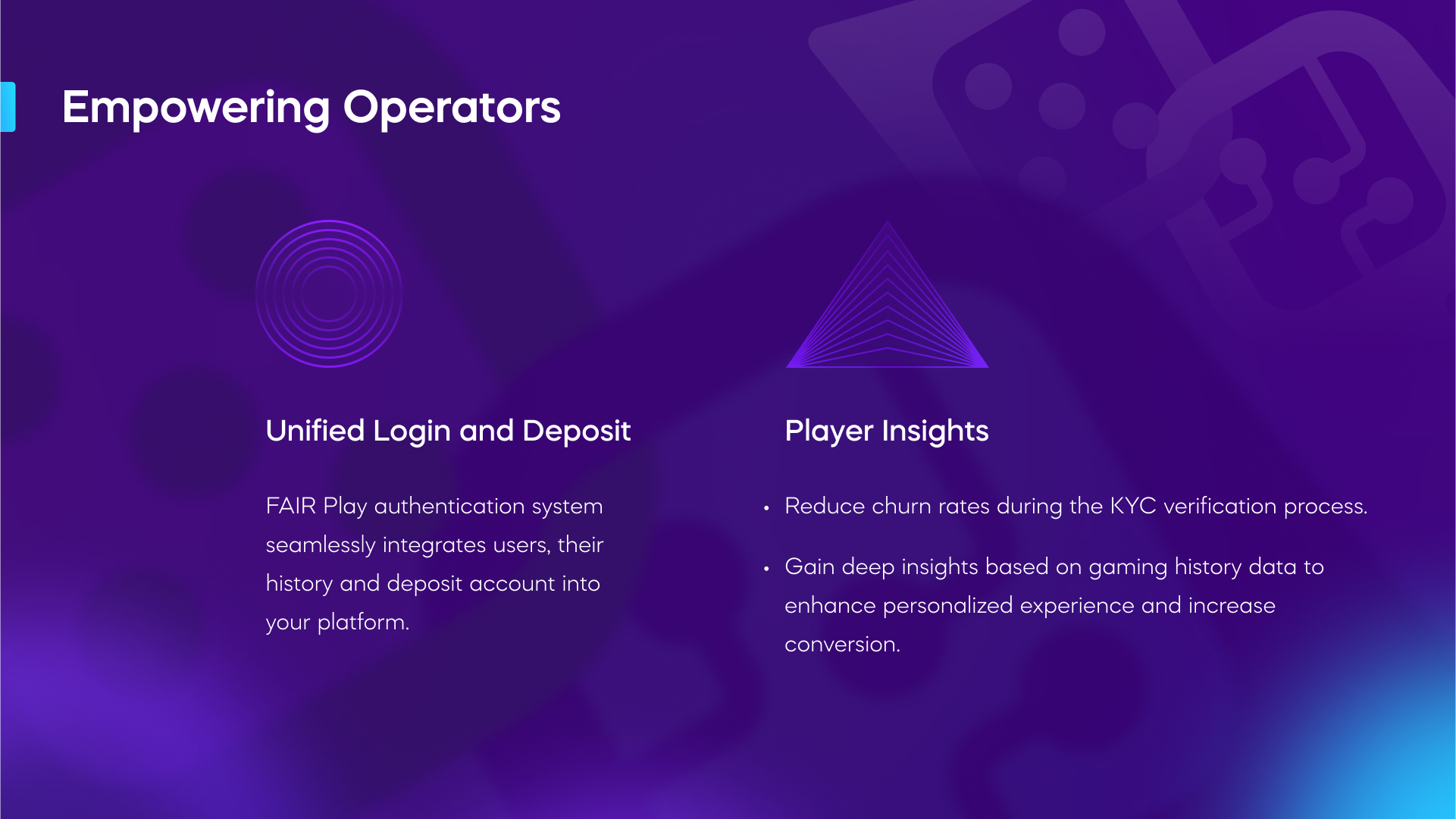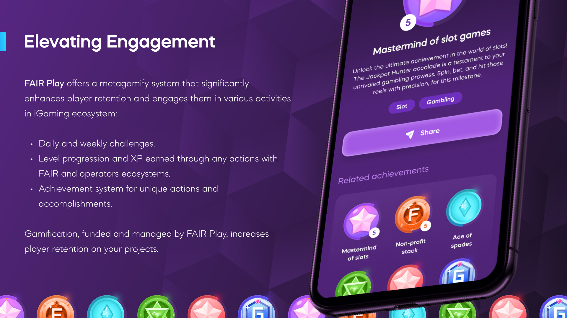 FAIR Play is a Web3 and blockchain-based platform that allows integration with bookmaking (betting) companies to attract their users through bonuses and completed tasks. This approach helps maintain greater interest and a higher user retention rate.