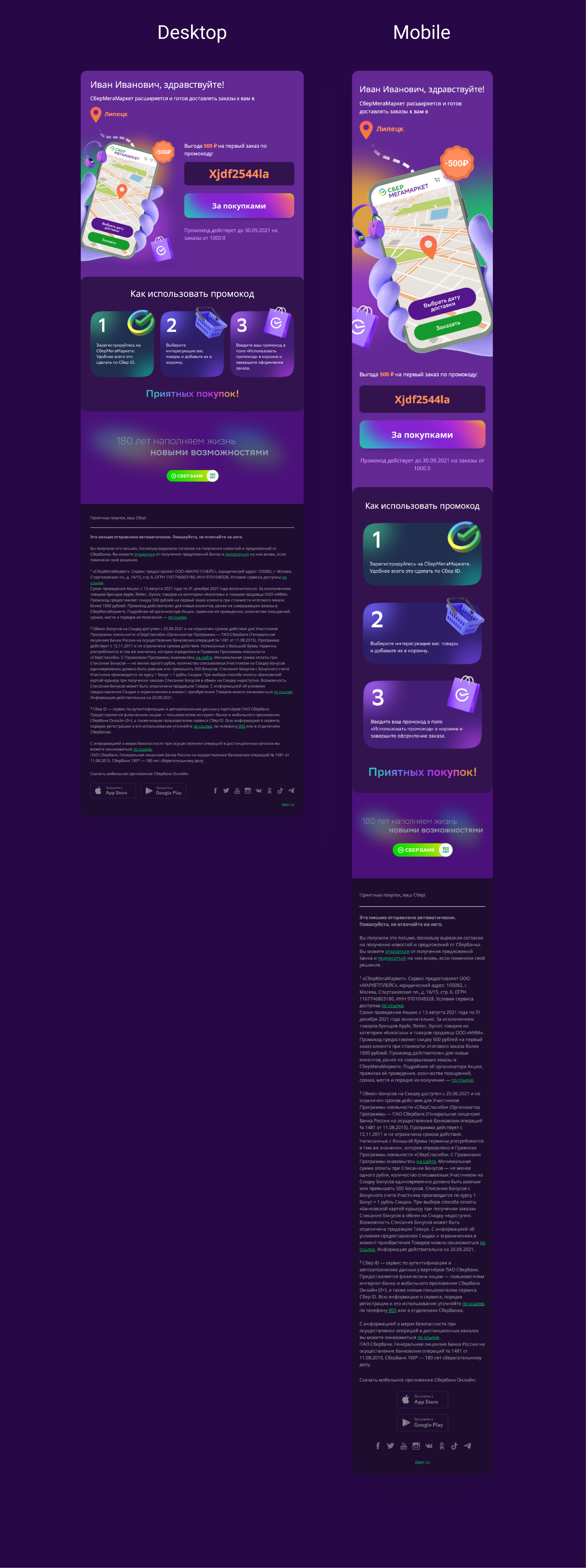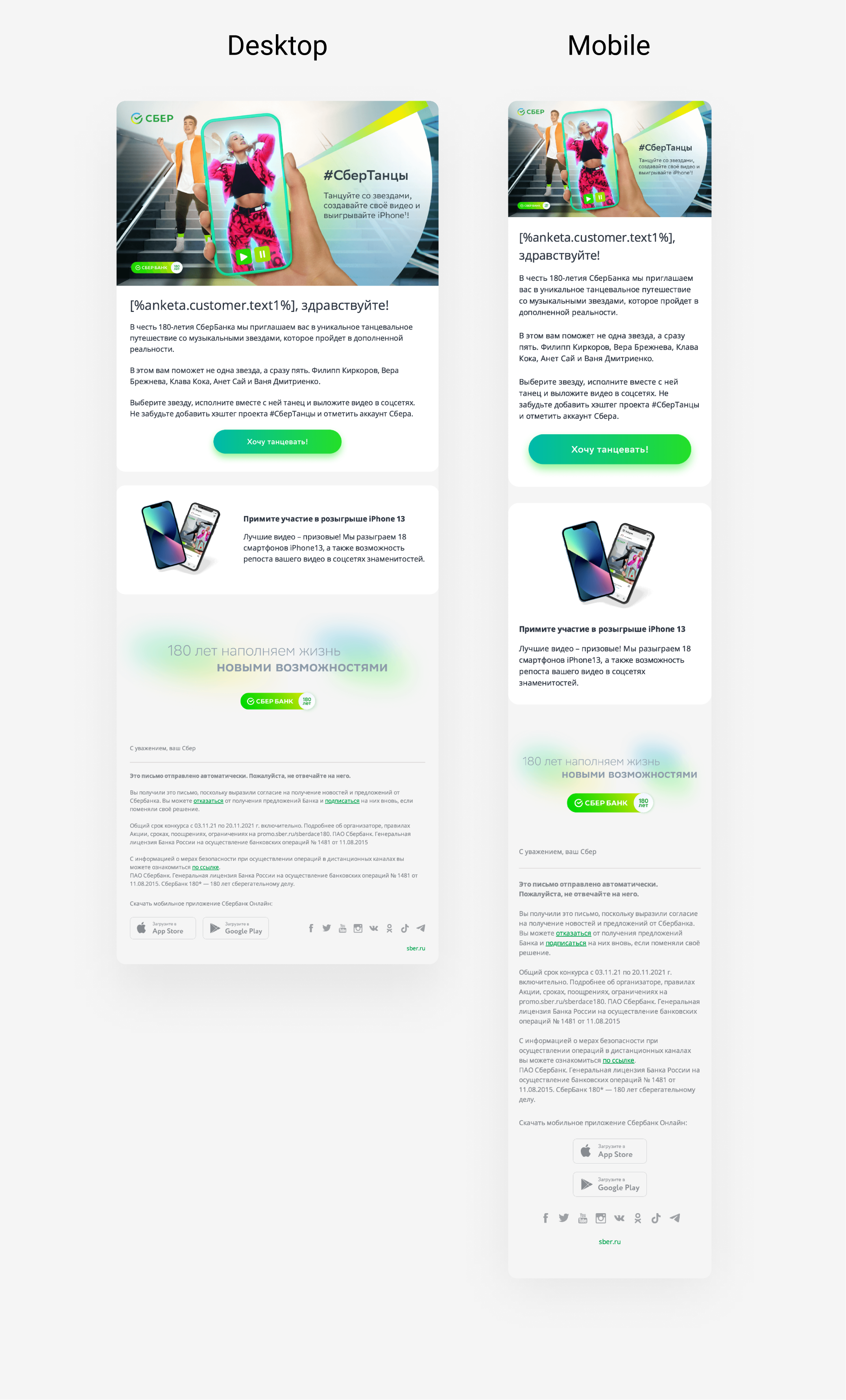 And sure, in modern mobile world, an email should have desktop and mobile versions at the same time.