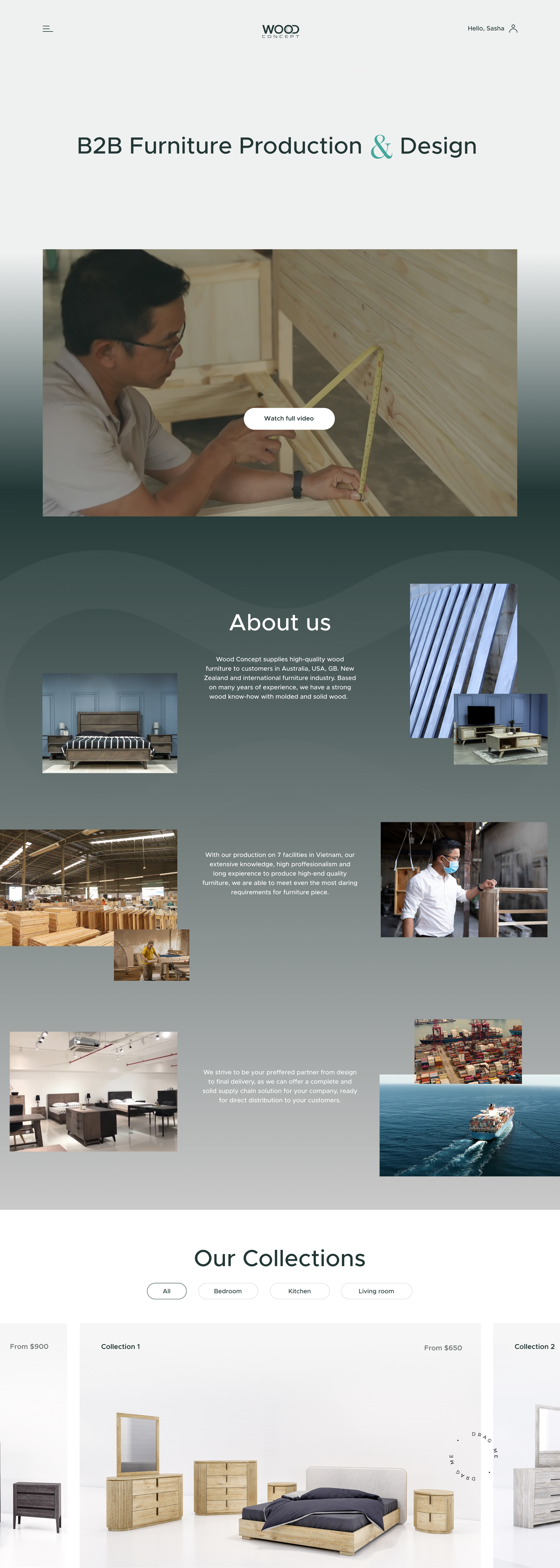 So I decided to introduce customers using video from the start of the page, then tell small story about the team and then show big beautiful renders of their production.