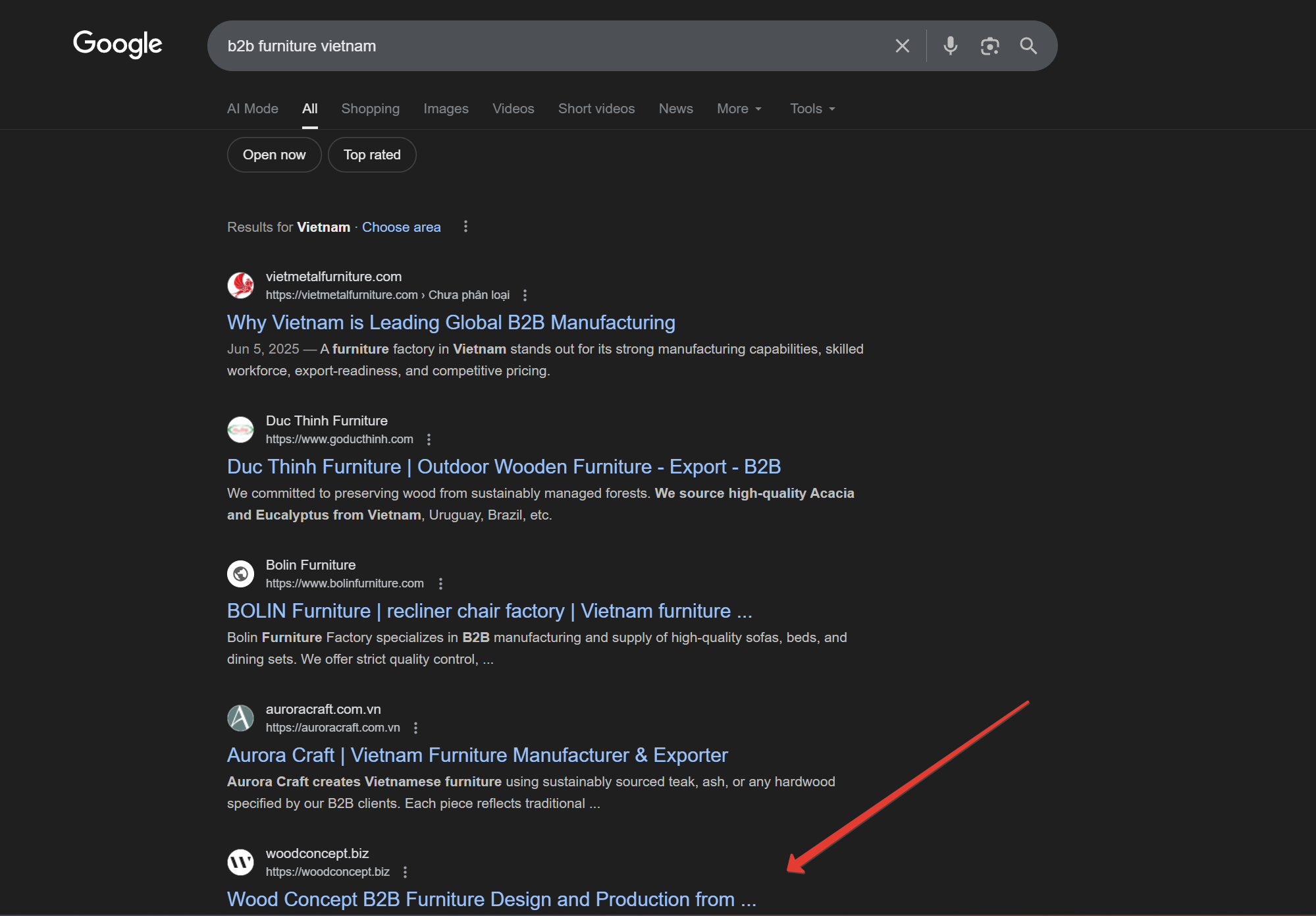 Within weeks of launch, the site achieved and has maintained a position on the first page of Google, ranking 5th for the key phrase “b2b furniture vietnam”