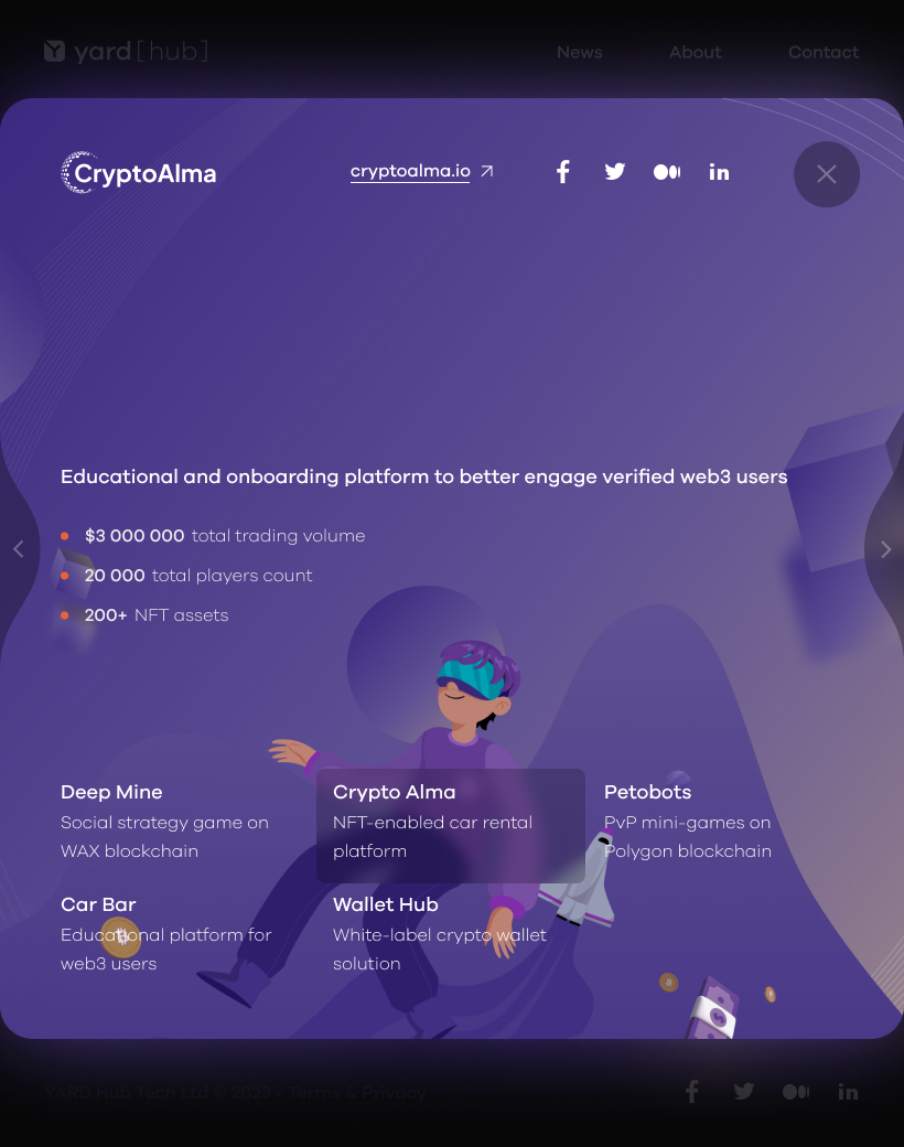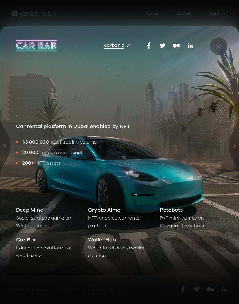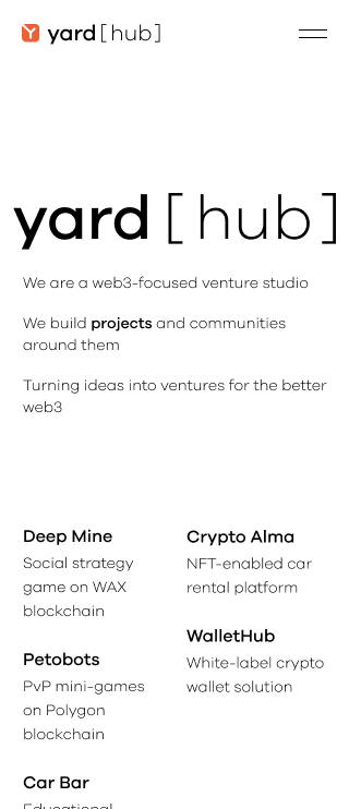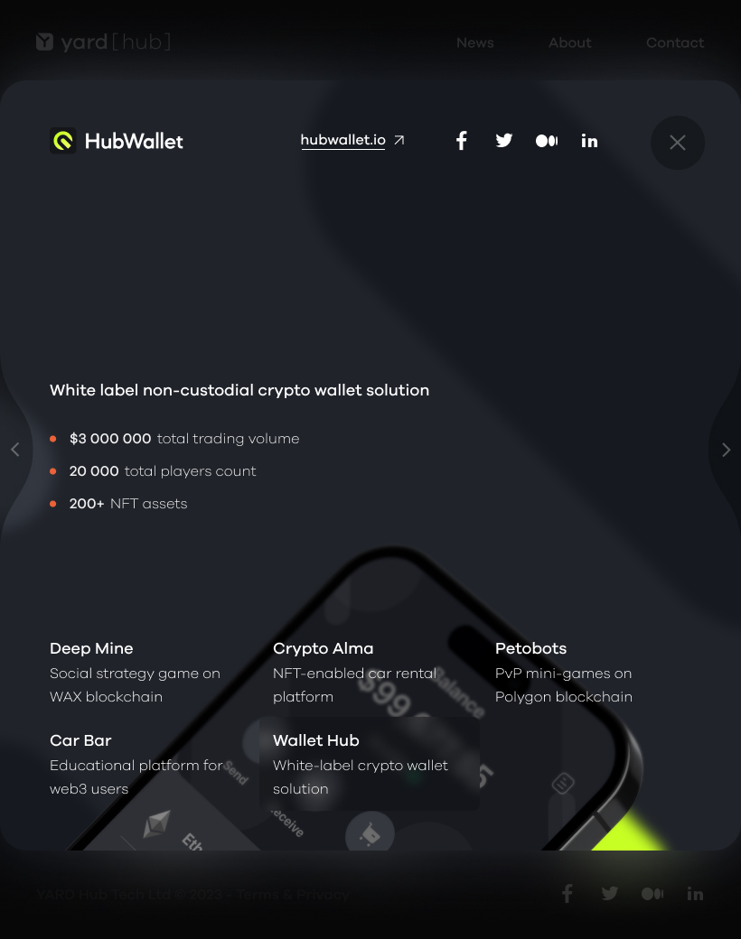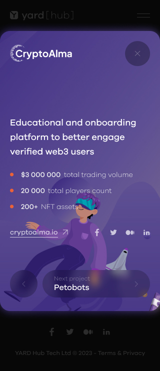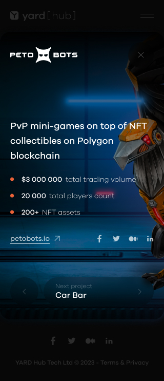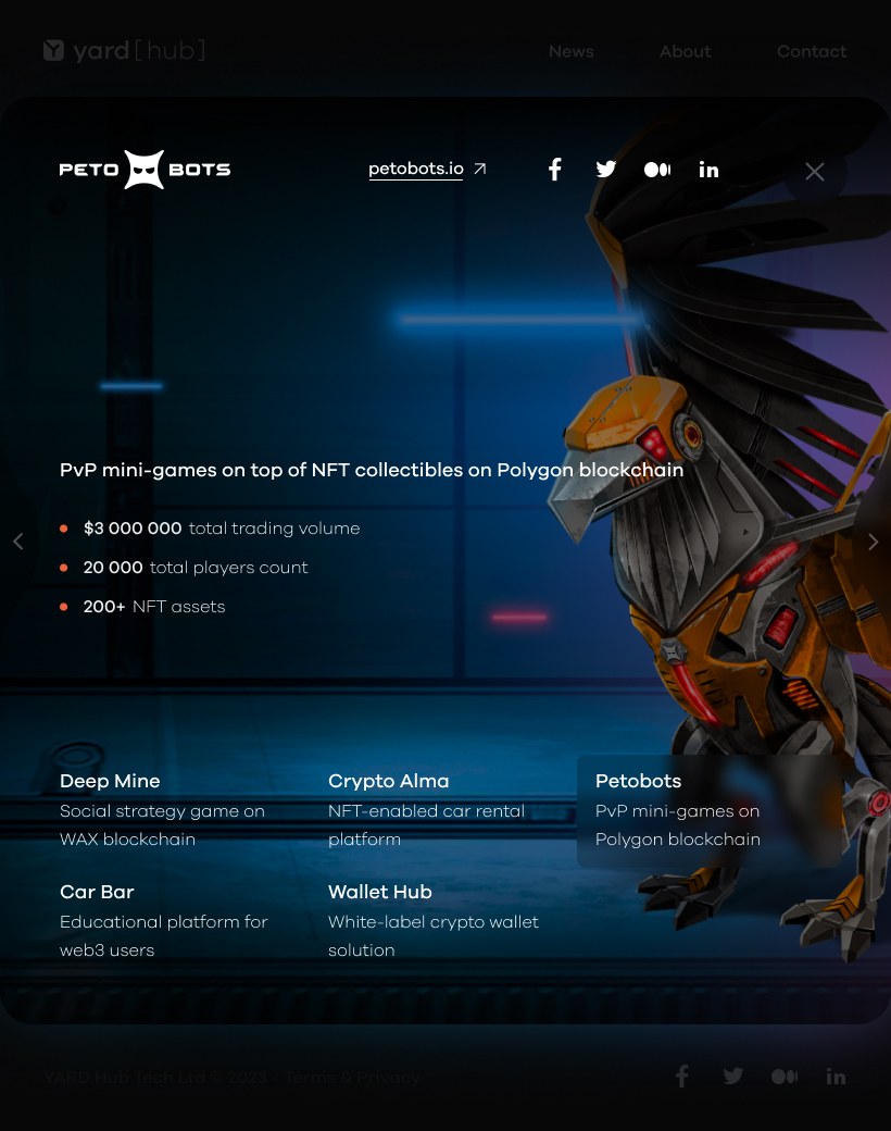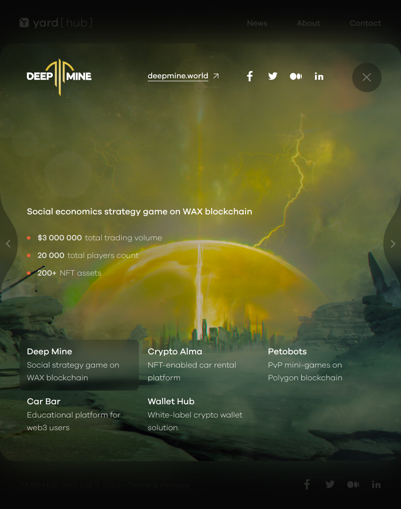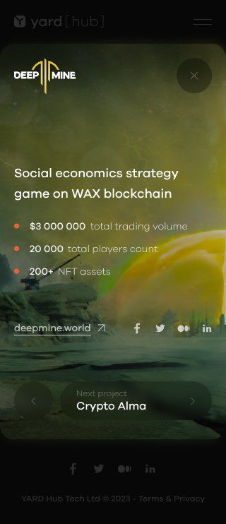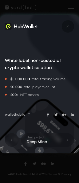 The Web3 studio I worked for developed several projects, including Deep Mine, Petobots, HUB Wallet, and FAIR Play, all of which are showcased in my portfolio.