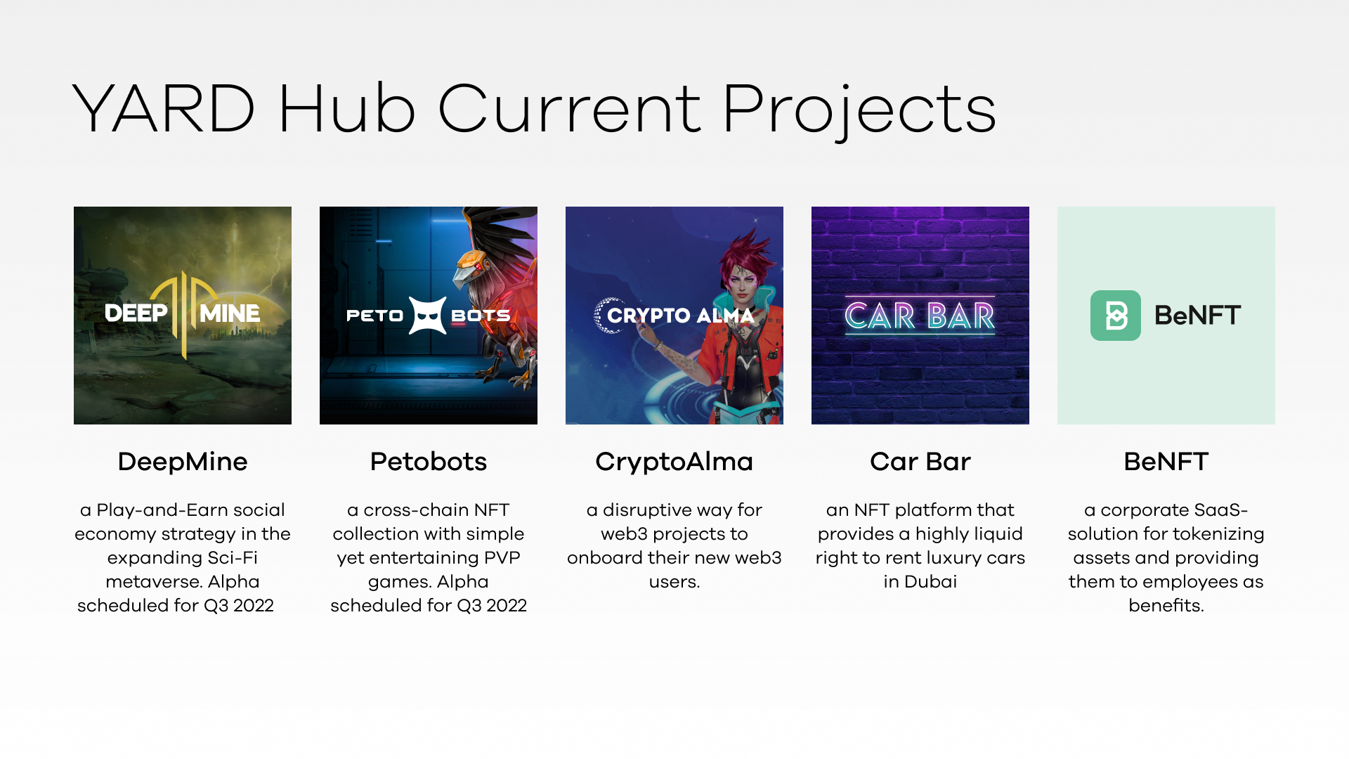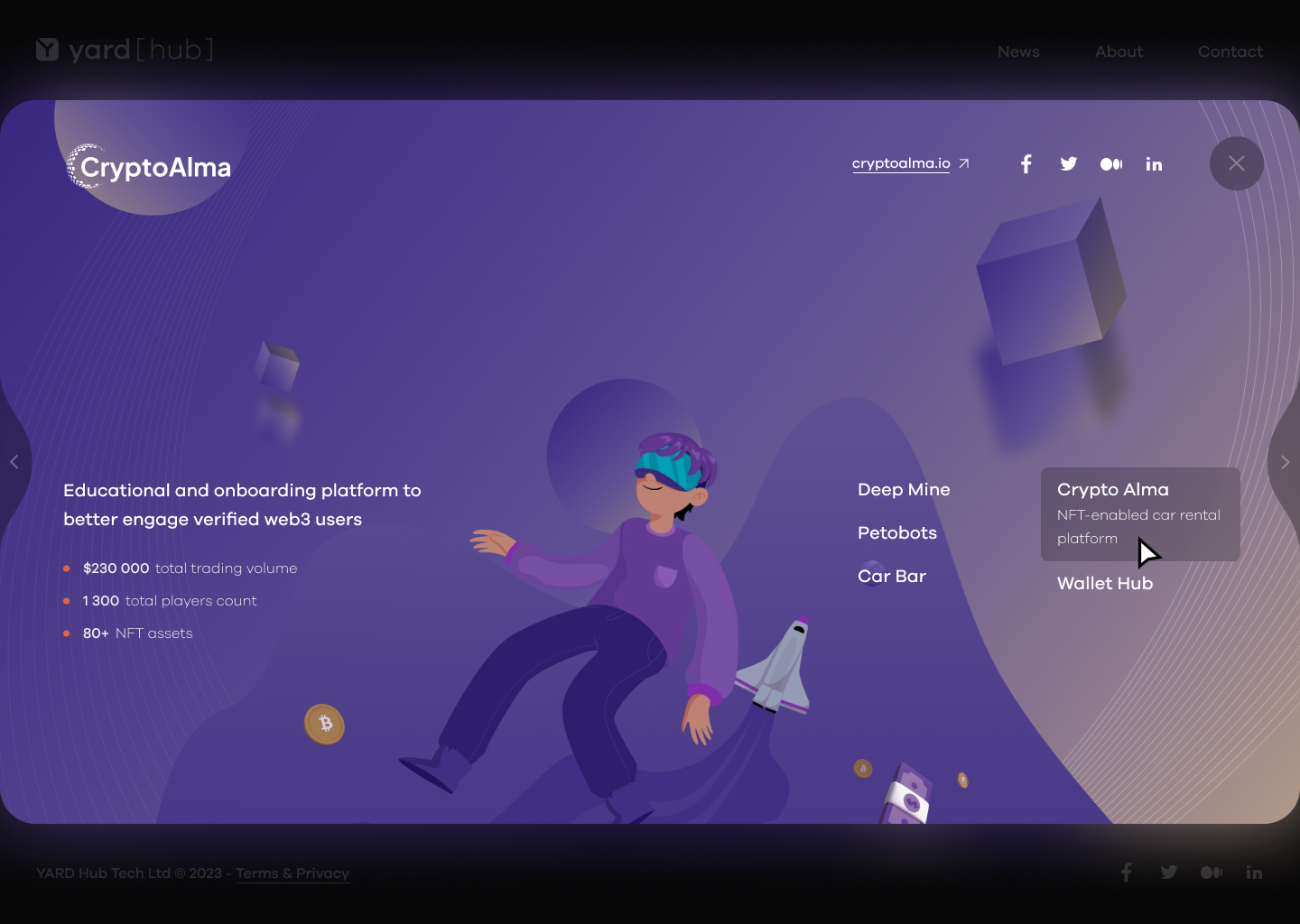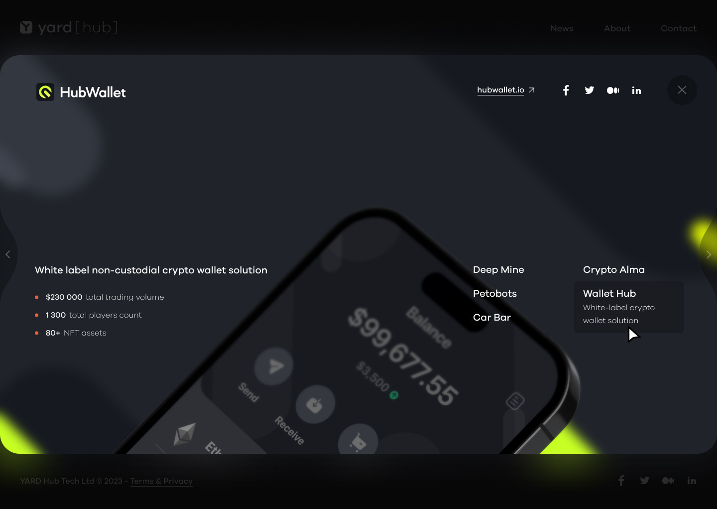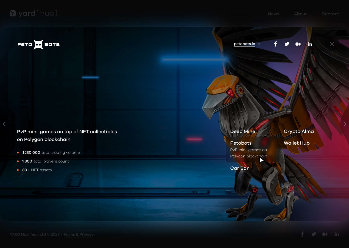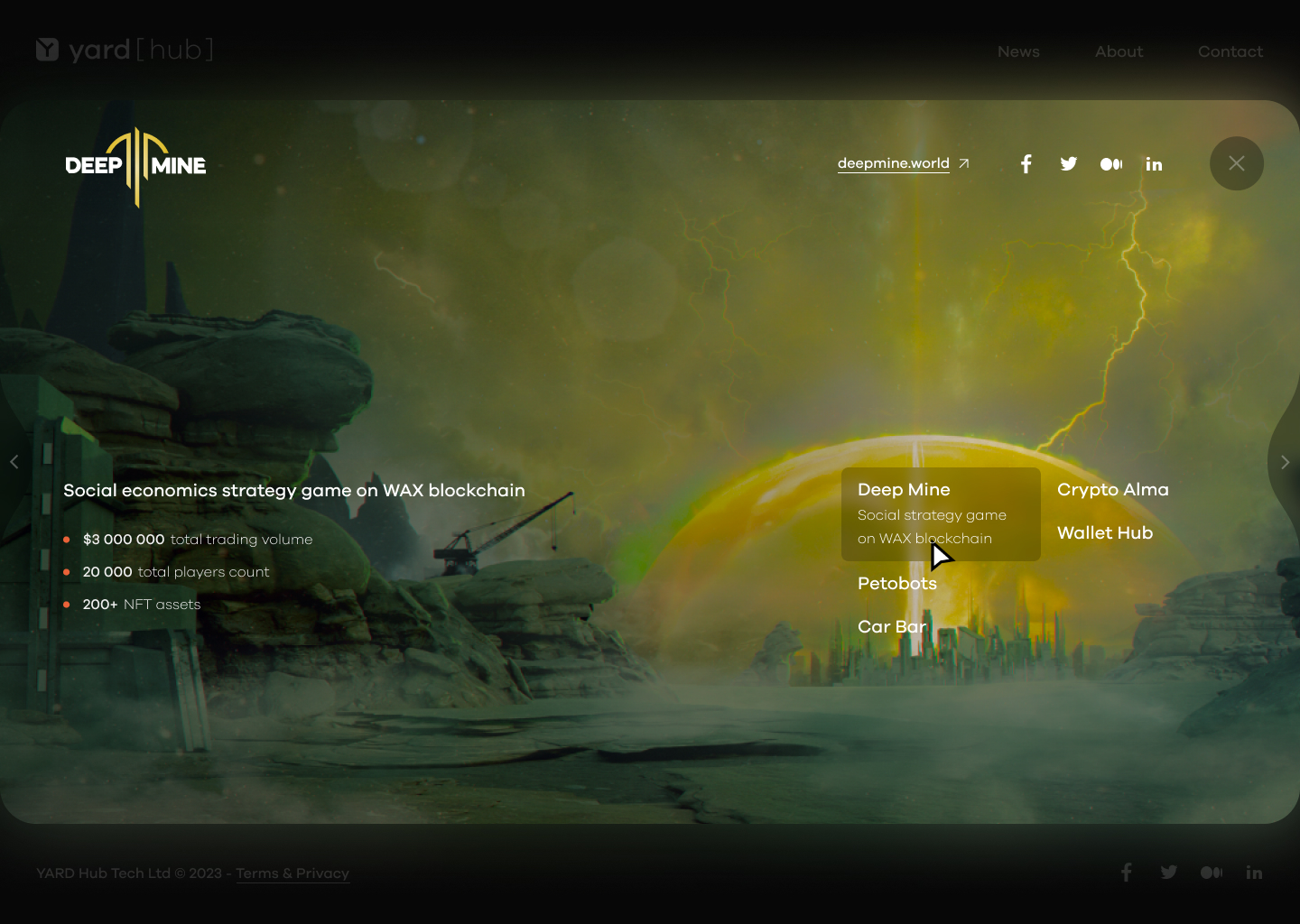The Web3 studio I worked for developed several projects, including Deep Mine, Petobots, HUB Wallet, and FAIR Play, all of which are showcased in my portfolio.